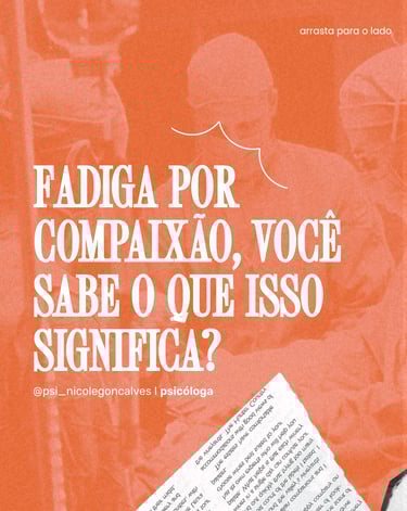 Quando se trabalha com demandas relacionados ao sofrimento (ex. profissionais da saúde), a gente pode experienciar fatiga, exaustão física e mental pelo constante contato com o estresse provocado pela compaixão.